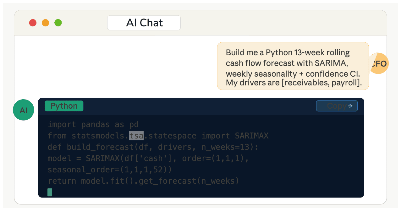 One of the CFOs in my AI Finance Club used to spend a full day every month just running the cash flow forecast. By the time he finished, half the assumptions had changed already.
